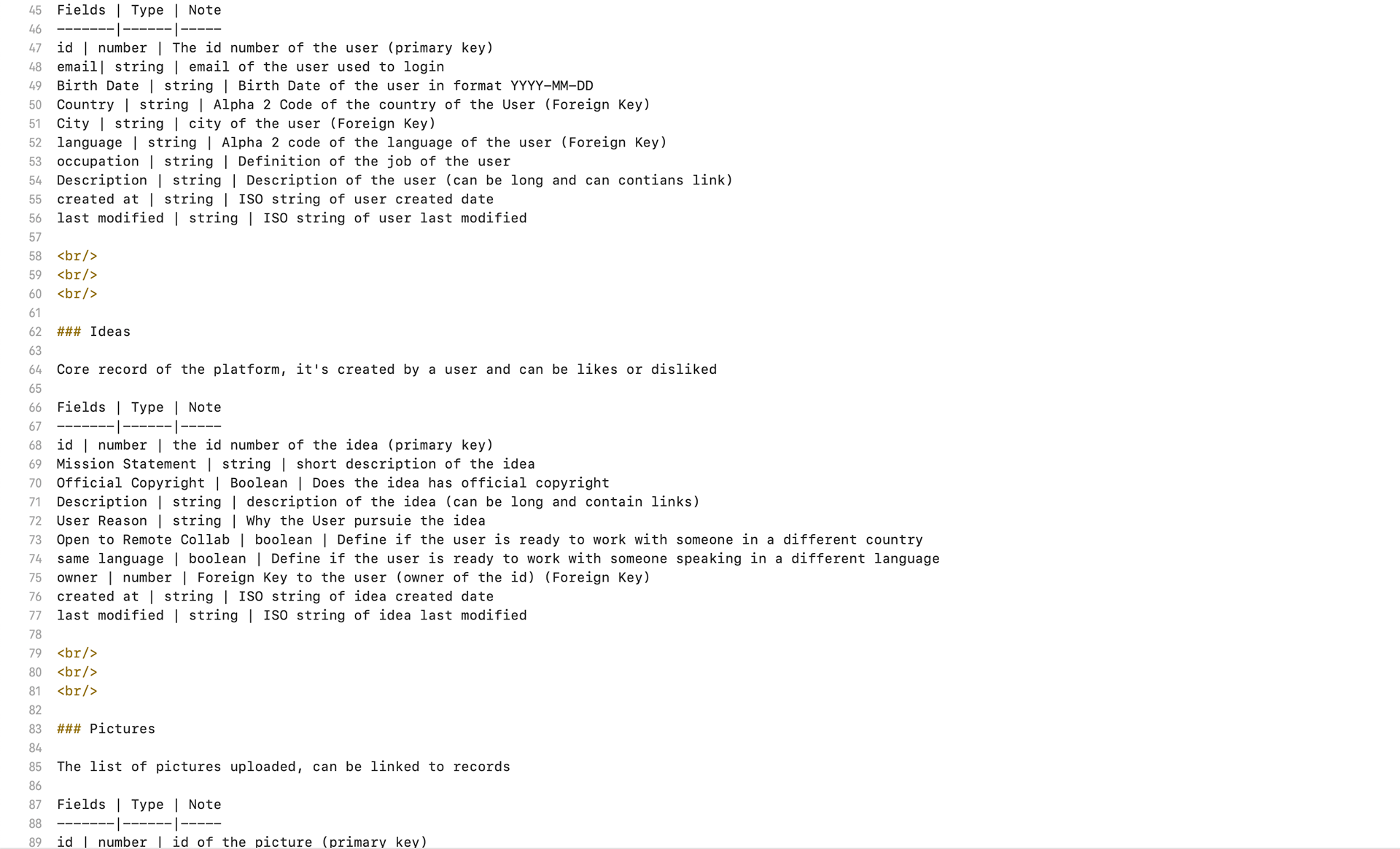 Database Structure in collaboration with engineer
